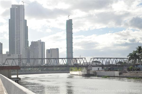 Seen in this picture is the Estrella bridge, the newest bridge to connect Makati to Mandaluyong City. The buildings at the back are the various office buidlings, hotels and condominiums of Rockwell Center. This photo was taken from the bridge along J.P. Rizal street, a small bridge that bypasses only a small creek situated midway between Rockwell and EDSA.