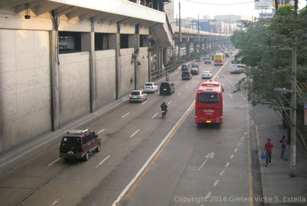 Shown here is the view of EDSA and the MRT Ortigas Station as seen from one of the stairs connecting the MRT station to the pedestrian sidewalk. This so called MRT “Ortigas” Station, I believe, should not have been called Ortigas Station since it is still very far (approximately 400 meters) from Ortigas Avenue. They should have called it MRT ADB Station.